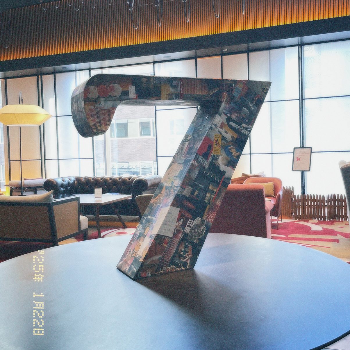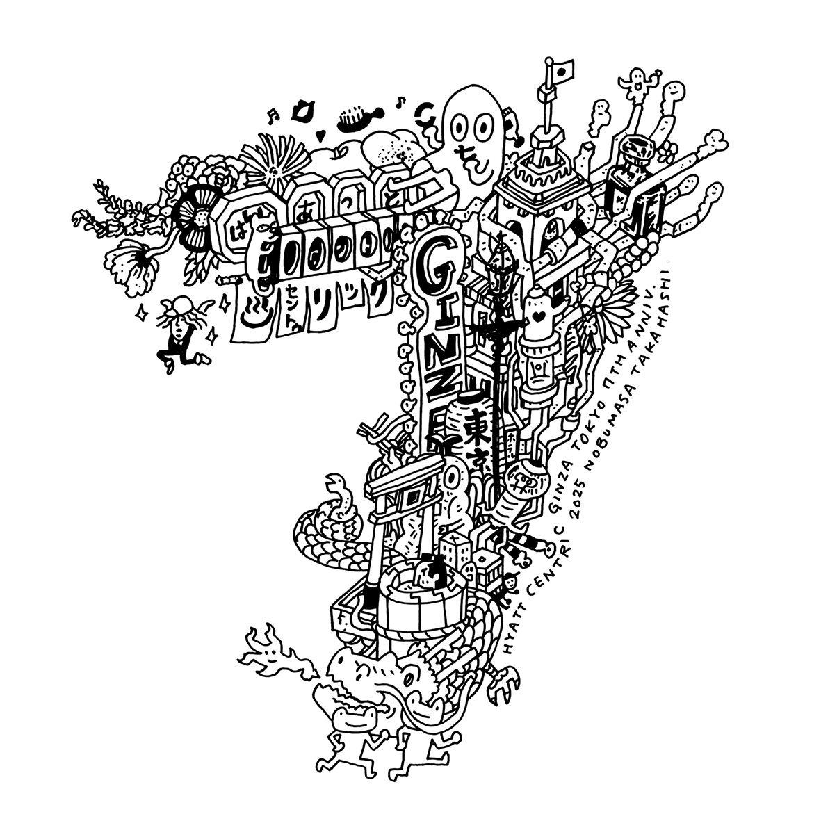 2025年1月22日「ハイアット セントリック 銀座 東京」7周年。コラージュシリーズで7周年オブジェを制作、グッズのイラストも描きました。前日にアトリエからタクシーで7周年オブジェを担いで納品。そのままその日は長女とホテルに宿泊させていただき、記念日当日を迎えました。