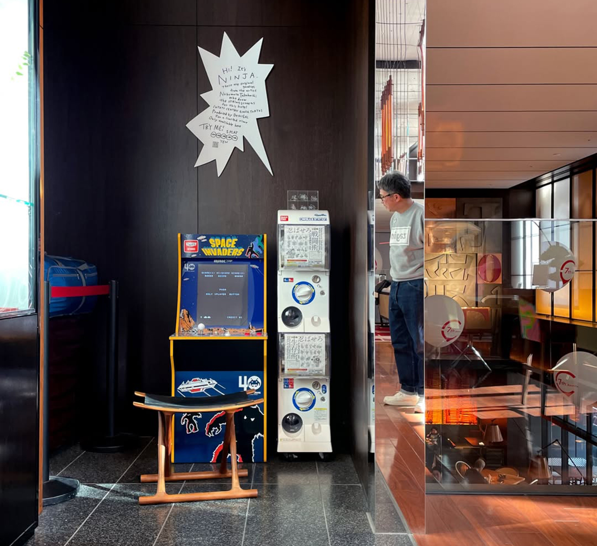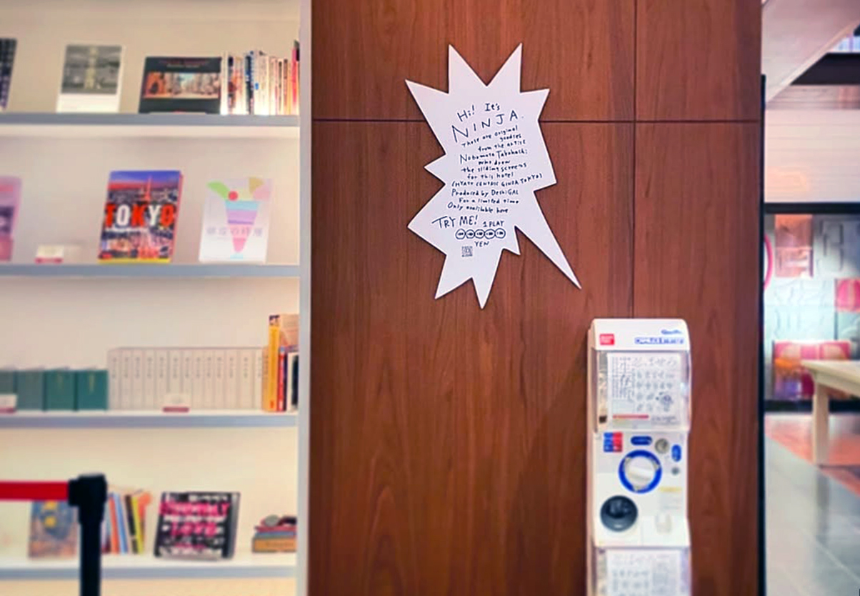 2024年6月16日に「ハイアット セントリック 銀座 東京」4階ライブラリーラウンジに忍者アクリルキーホルダーガシャポンを設置しました。10月20日に漫画の吹き出し風オリジナル説明パネルを設置。2025年2月にライブラリーラウンジの奥に移動しました。