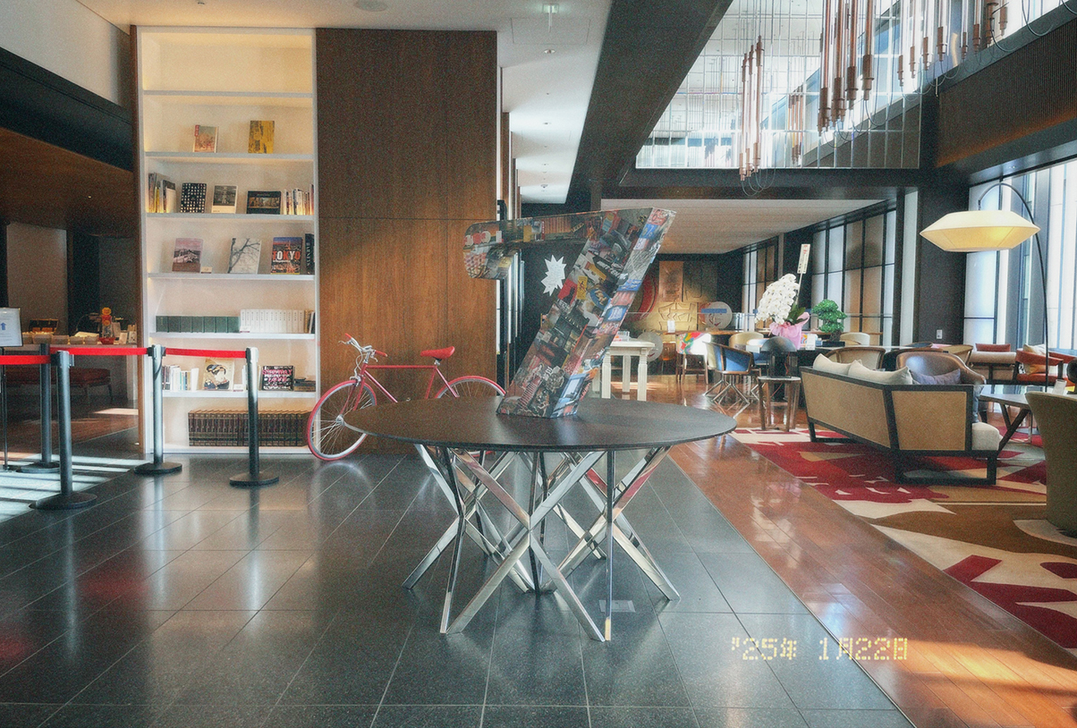 2025年1月22日「ハイアット セントリック 銀座 東京」7周年。コラージュシリーズで7周年オブジェを制作、グッズのイラストも描きました。前日にアトリエからタクシーで7周年オブジェを担いで納品。そのままその日は長女とホテルに宿泊させていただき、記念日当日を迎えました。