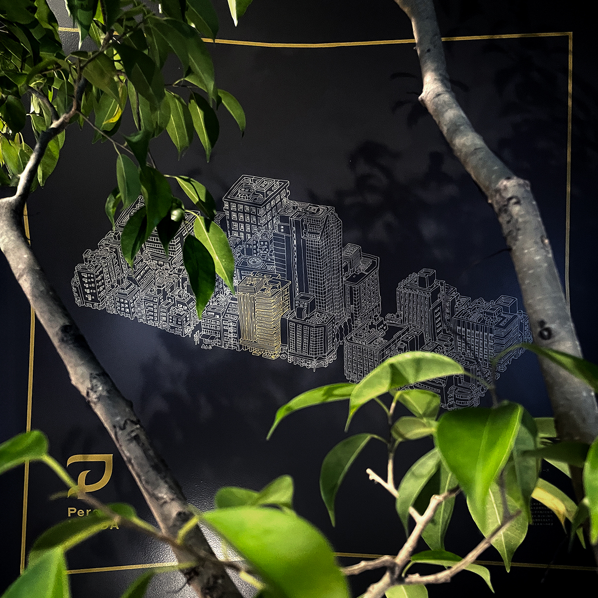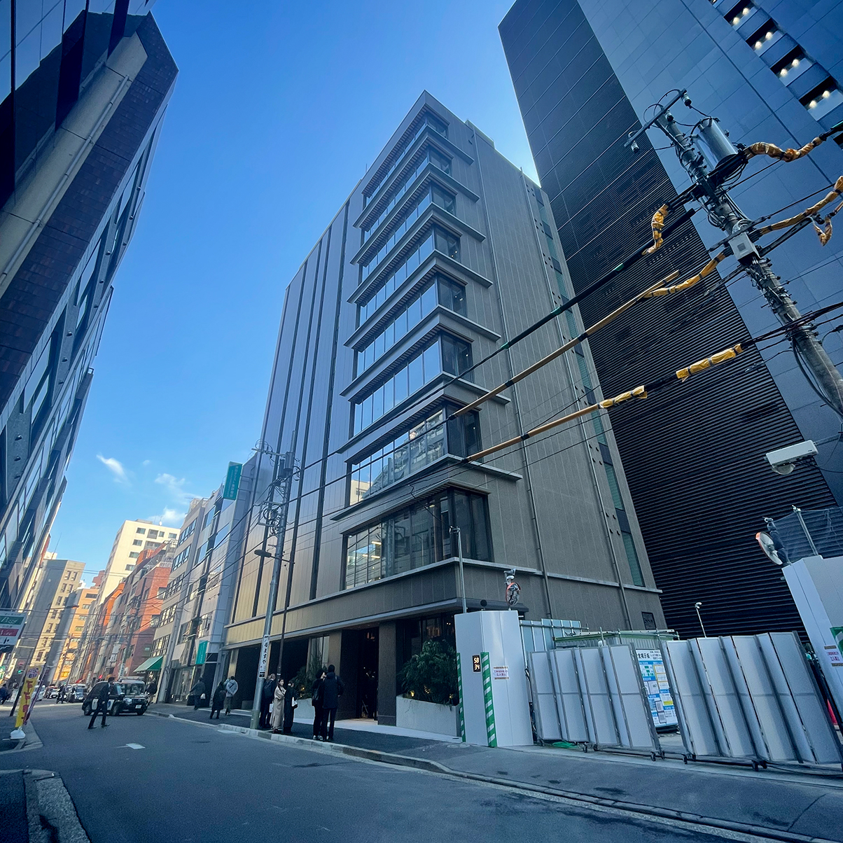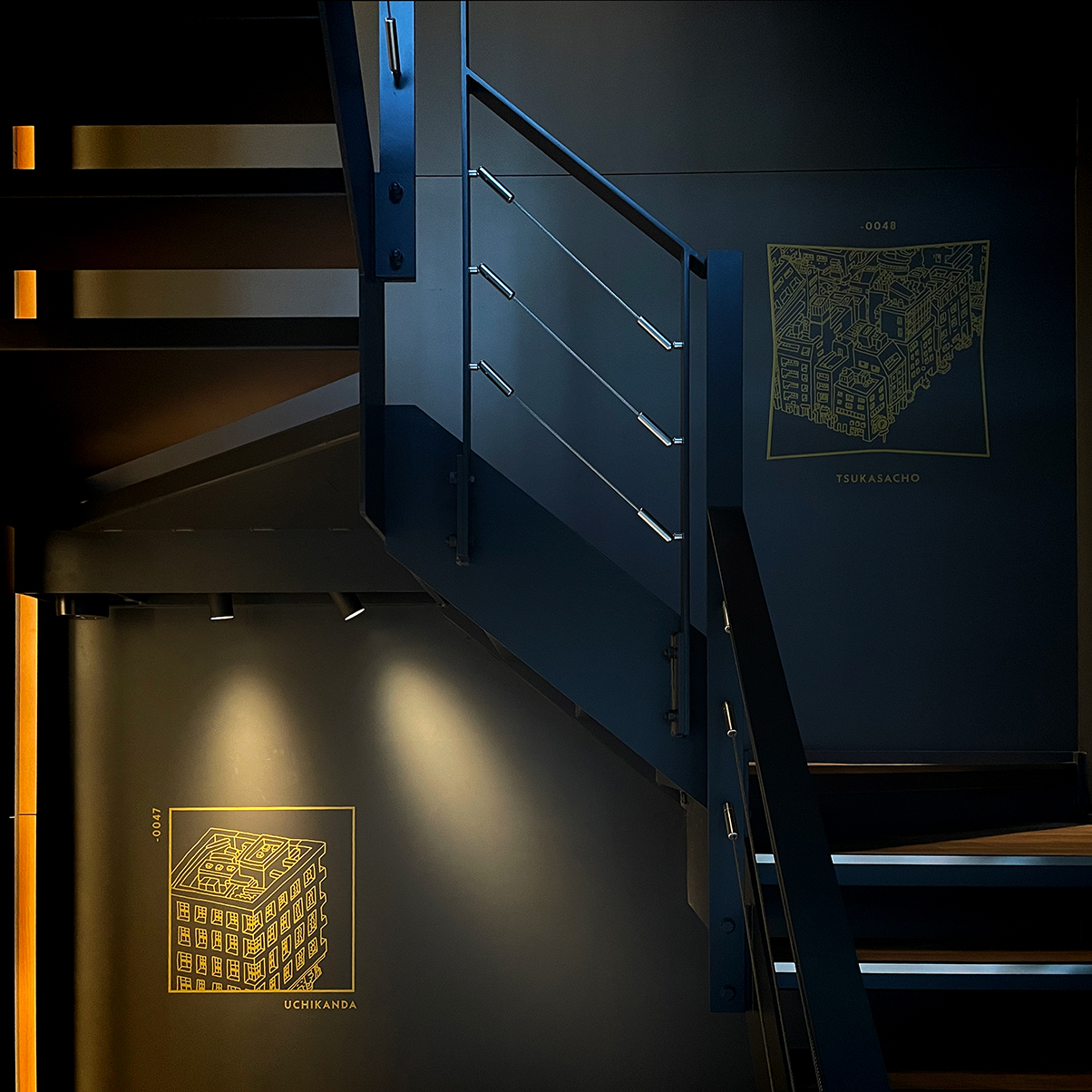 In December 2025, the new headquarters, Perches KANDA, was completed.The artwork originally created for the temporary fencing, titled “Kanda Mitoshirocho 7th Project,” has now been permanently installed on the stairway wall inside the building.