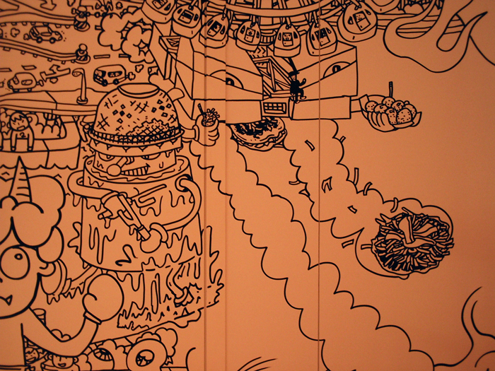 In the summer of 2008, I draw it on the wall of 30x3m on the 6th floor of Breeze Tower in Nishi-Umeda, Osaka, over 3 months. This work depicts the Japanese city "Osaka"